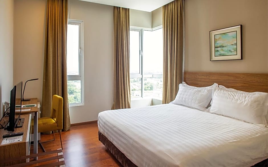 This two-bedroom suite features a private balcony that opens up to views of the city. The spacious living room is fitted with a flat-screen TV, sofa and a desk. The dining area has a refrigerator and a microwave. The private bathroom includes shower facilities. Rates are breakfast inclusive for 4 guests. Extra guests are subject to additional charges.
