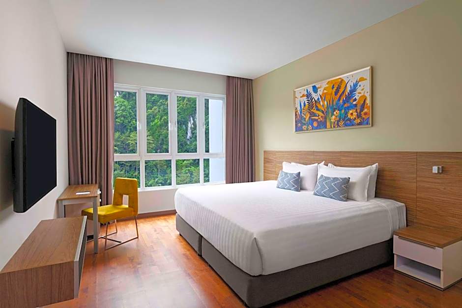 This air-conditioned suite features a private balcony that opens up to views of the lake and limestone outcrop. The spacious seating area is fitted with a flat-screen TV, sofa and a desk. The private bathroom includes shower facilities. Rates are breakfast inclusive for 4 guests. Extra guests are subject to additional charges.
